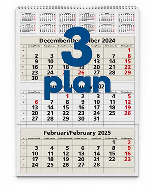 Gullers stora 3-månaderskalender. Praktisk planeringskalender på väggen med 3 månaders översikt för varje sida.