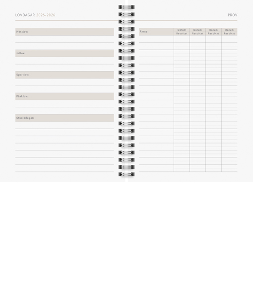 - 1 vecka per uppslag, anteckningar och månadsöversikt för aktuell månad