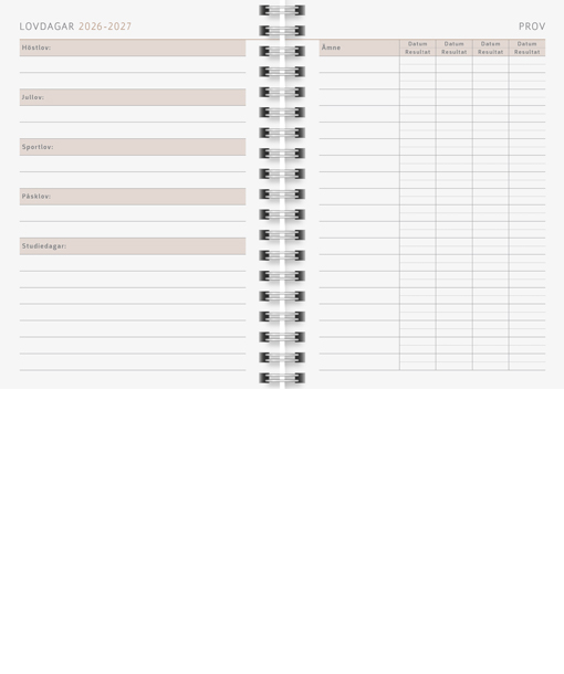 Layout: 1 vecka per uppslag
