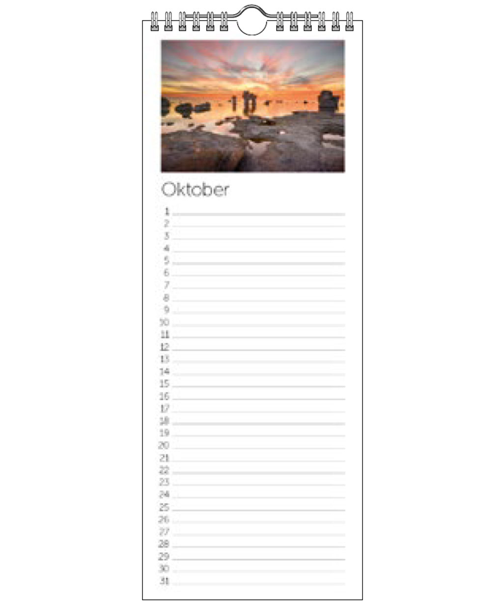 Kalendarium: 1 månad per sida. Datum utan veckodagar så man kan använda i flera år.