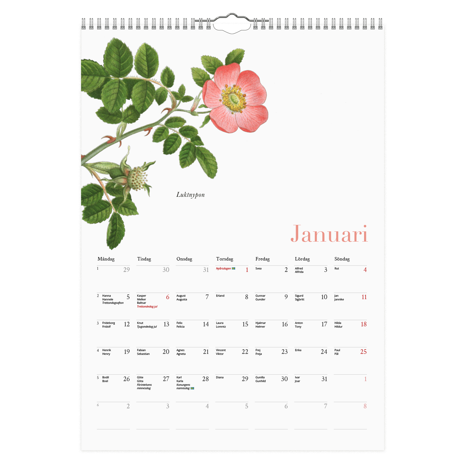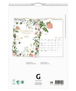 En lyxig väggkalender i smidigt format på 210 × 297 millimeter. Svensktillverkad och miljömärkt.