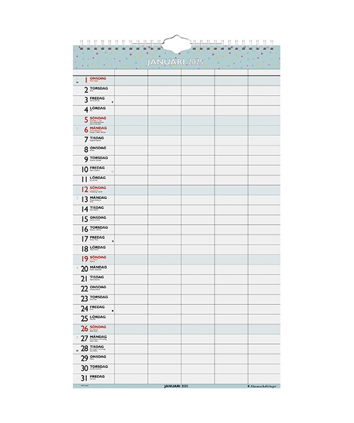 Familjekalendern 5 kolumner 2025