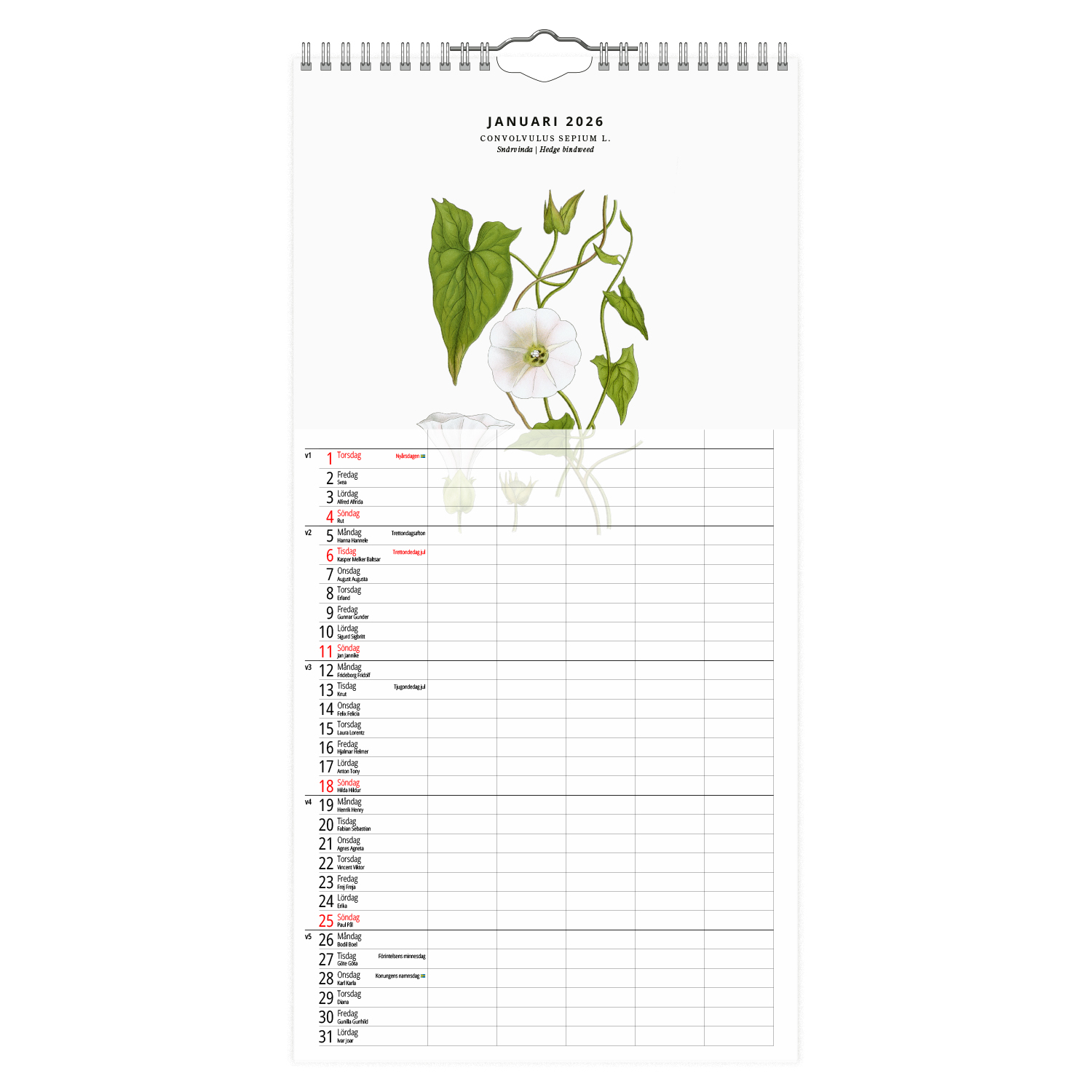 En praktiskt planeringskalender för hela familjen, med fina bilder på växter.