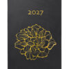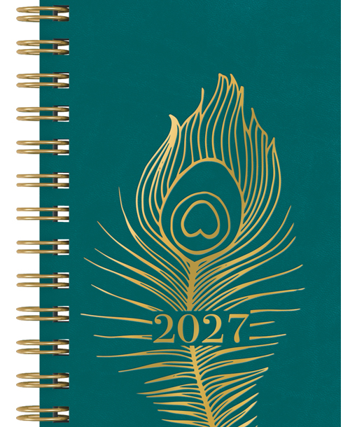 Layout: 1 vecka per uppslag. Radvis över hela uppslaget med månadsöversikt och anteckningsyta överst till vänster.