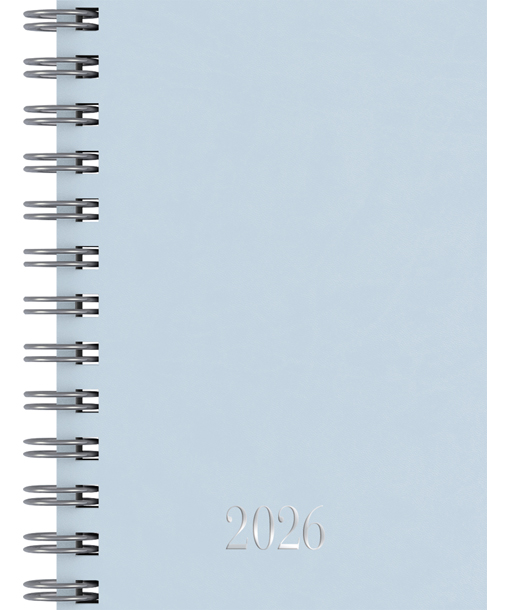 Layout: 1 vecka per uppslag. Radvis över hela uppslaget med månadsöversikt och anteckningsyta överst till vänster.