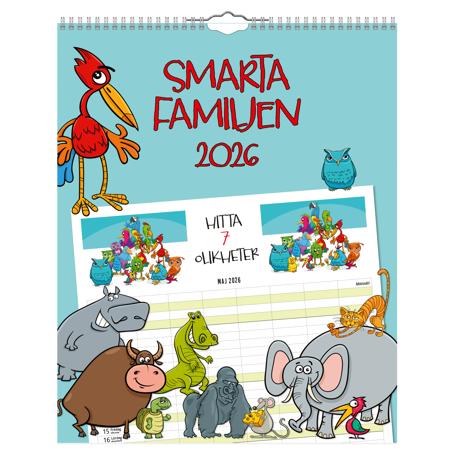 Familjekalender med 6 kolumner för smart planering av familjens aktiviteter samt en kolumn för matsedel.